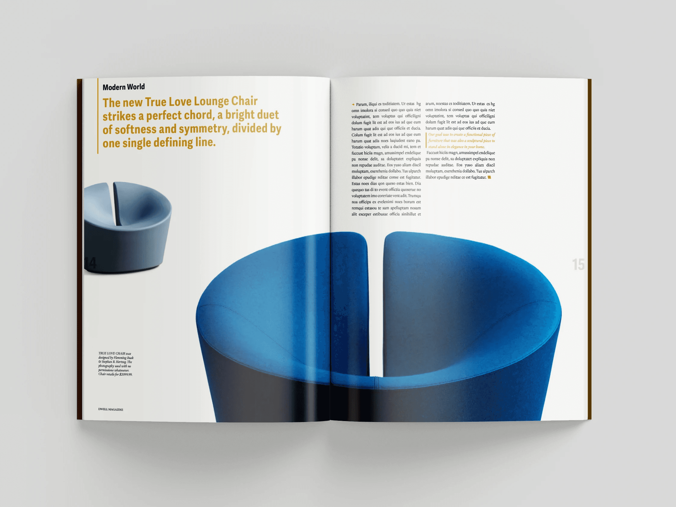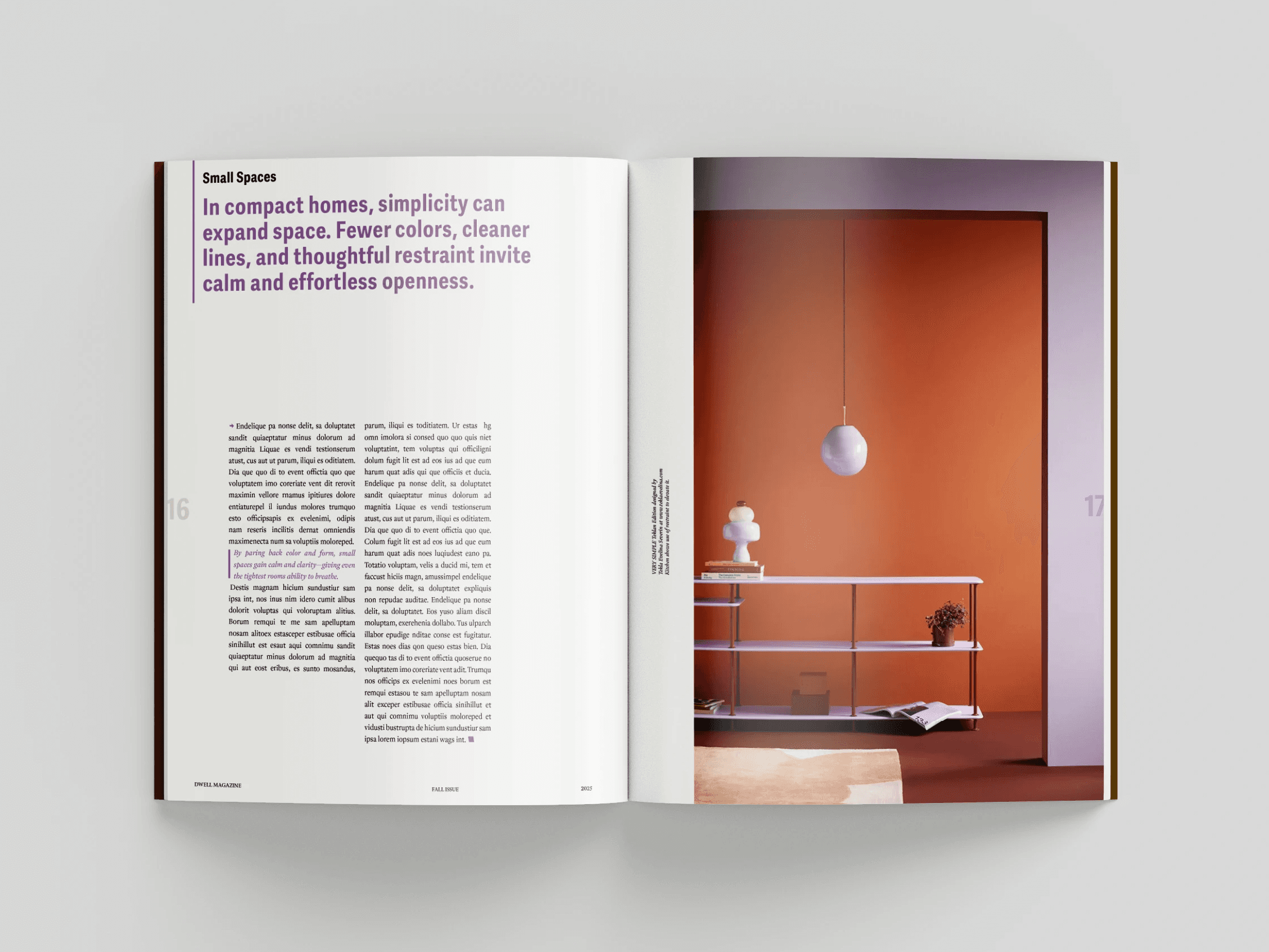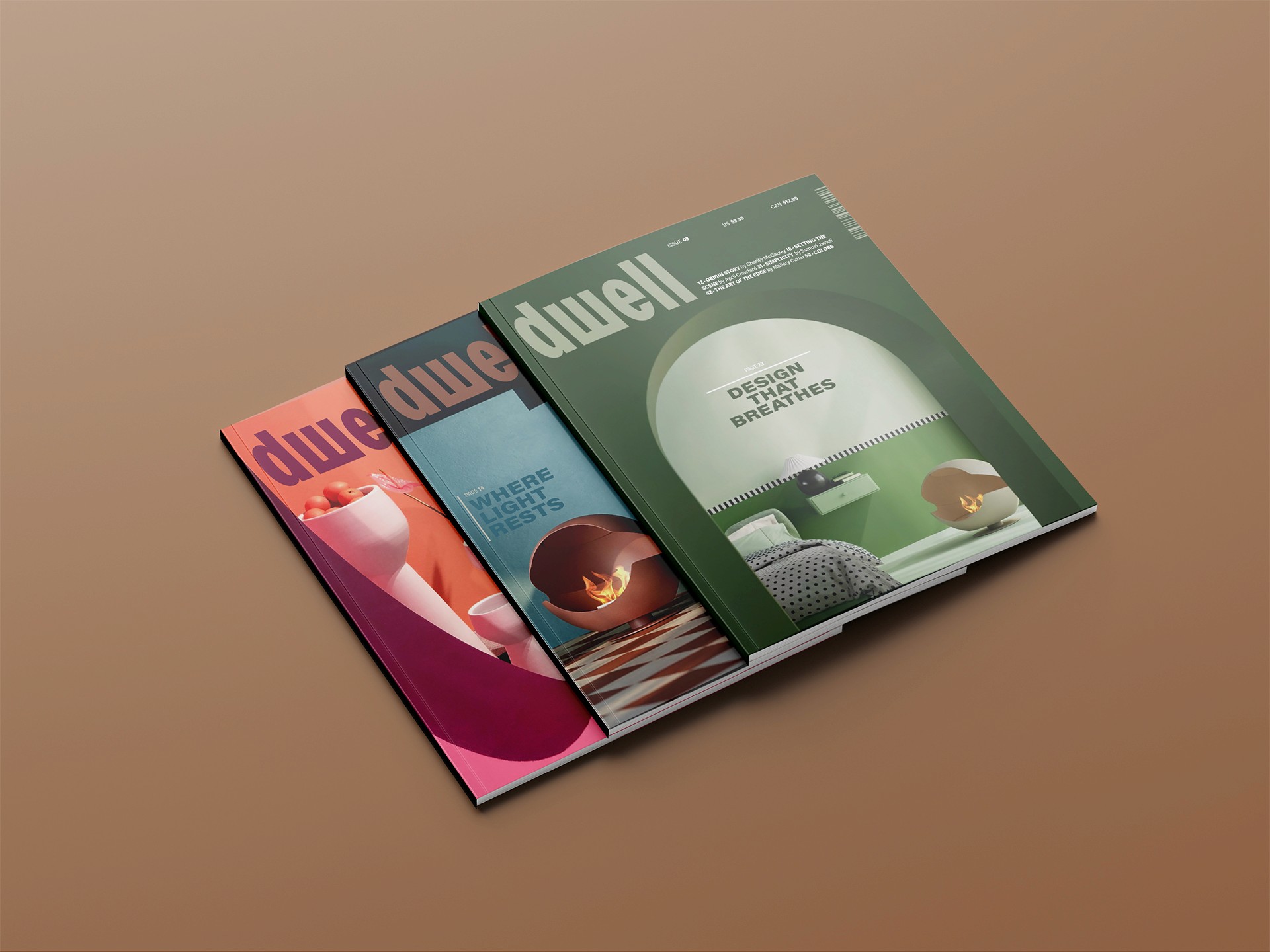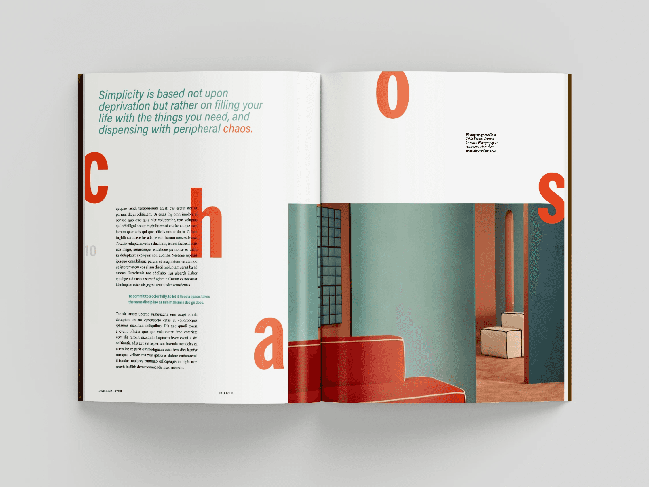 This redesign of Dwell magazine focused on interiors: cozy and colorful interior photography and a new masthead inspired by light streaking through a window and into a room.